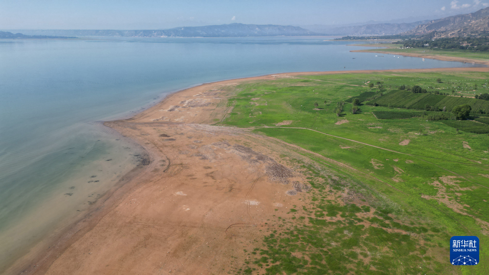 刘家峡水库水位下降,大片河滩裸露(7月24日摄,无人机照片)。新华社发(史有东 摄)