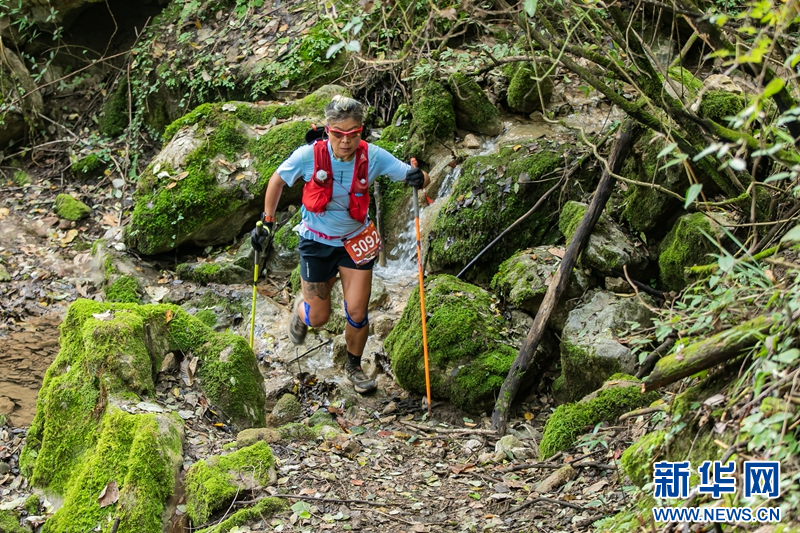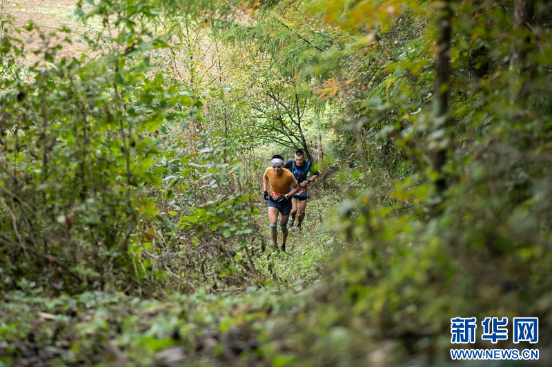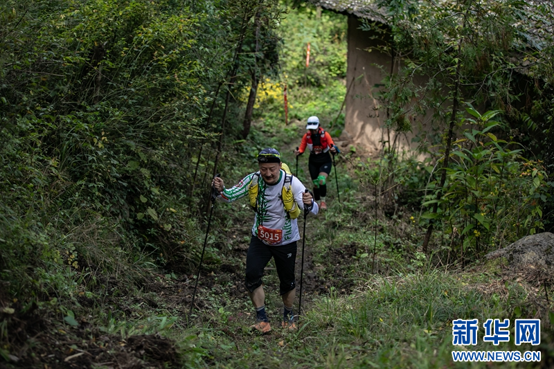 10月21日,参赛选手在蜀道·青泥岭2023山地挑战赛比赛中。新华社记者 郎兵兵