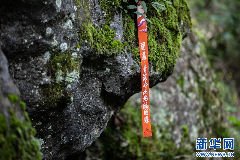 这是10月21日拍摄的蜀道·青泥岭2023山地挑战赛赛道引导布条。新华社记者 郎兵兵