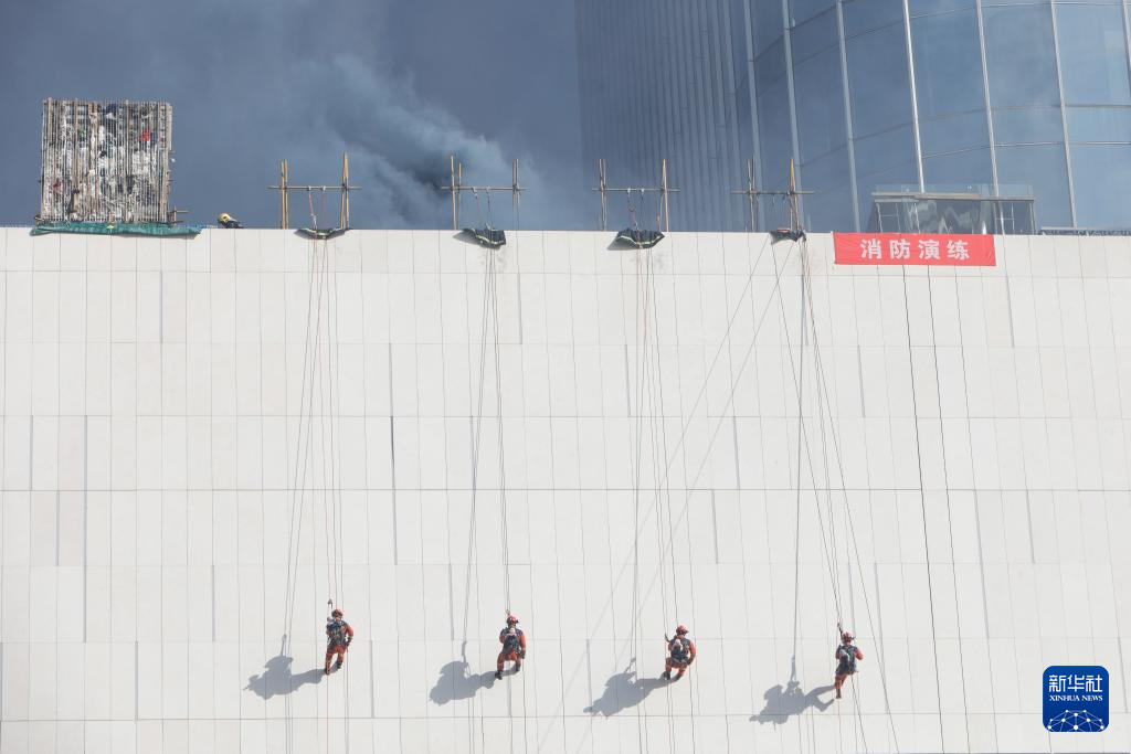 这是11月8日拍摄的高层建筑灭火救援实战演练现场。新华社记者 方欣 摄