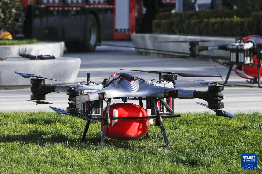 这是11月8日拍摄的新型高喷灭火无人机。新华社记者 方欣 摄