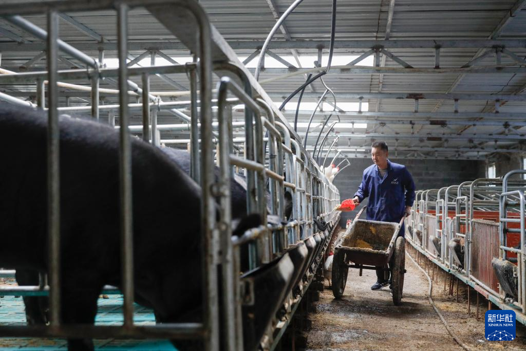 11月15日,在舟曲县峰迭镇狼岔坝村,村民在喂黑土猪。新华社记者 方欣 摄