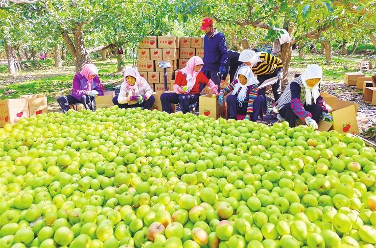 民乐县苹果梨迎来丰收。王晓泾