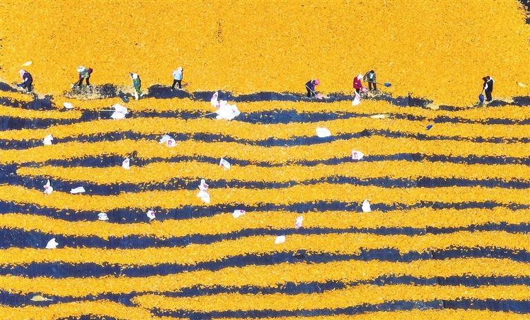 金秋时节,张掖大地满目金黄。连片的制种玉米地里,机械来回穿梭、农民群众抓紧抢收,一派热火朝天的丰收景象。