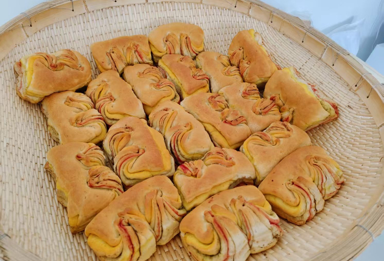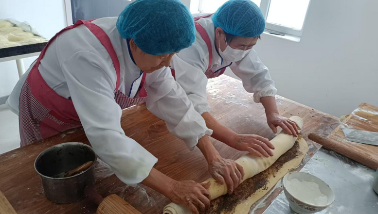据了解,陈家沟村手工馍馍坊是由闲置的养老院改造而成。陈家沟村手工馍馍坊选用本地优质小麦和自产胡麻油,以古老的手法制作而成,主要生产炉盔、扇扇子等金昌特色食品,重现记忆中的老味道。在运营模式上,陈家沟村创新采用“党支部+工坊+村民”的发展模式。村党支部统筹规划,村民深度参与,形成紧密的利益共同体。生产的手工馍馍热销周边村及农贸批发市场,有效促进了农民增收。