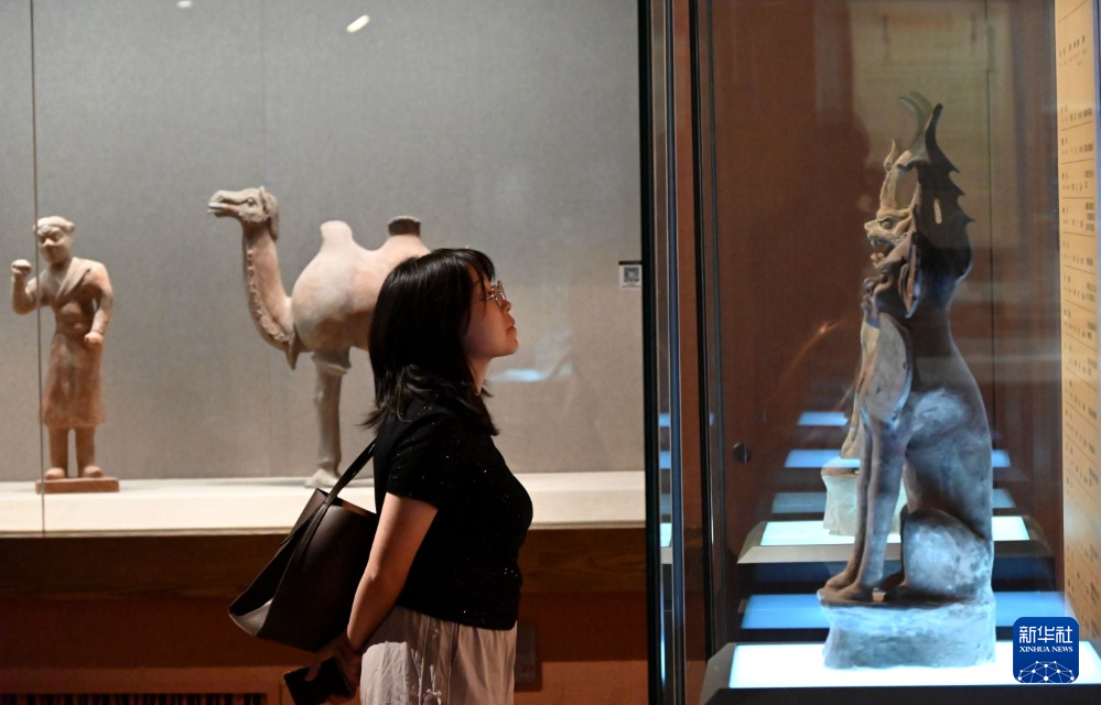6月14日,游客在甘肃省敦煌市博物馆参观文物展。新华社发(张晓亮 摄)
