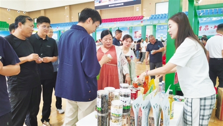 瓜州县体育馆设置的28个市州和县市区展位各具特色,突出地域性“甘味”“酒泉味道”的蜜瓜、枸杞等13类80款产品,充分展示了各地丰富的农牧资源和特色产业成果;琳琅满目的土特产吸引不少采购者和消费者试吃,并下单购买。