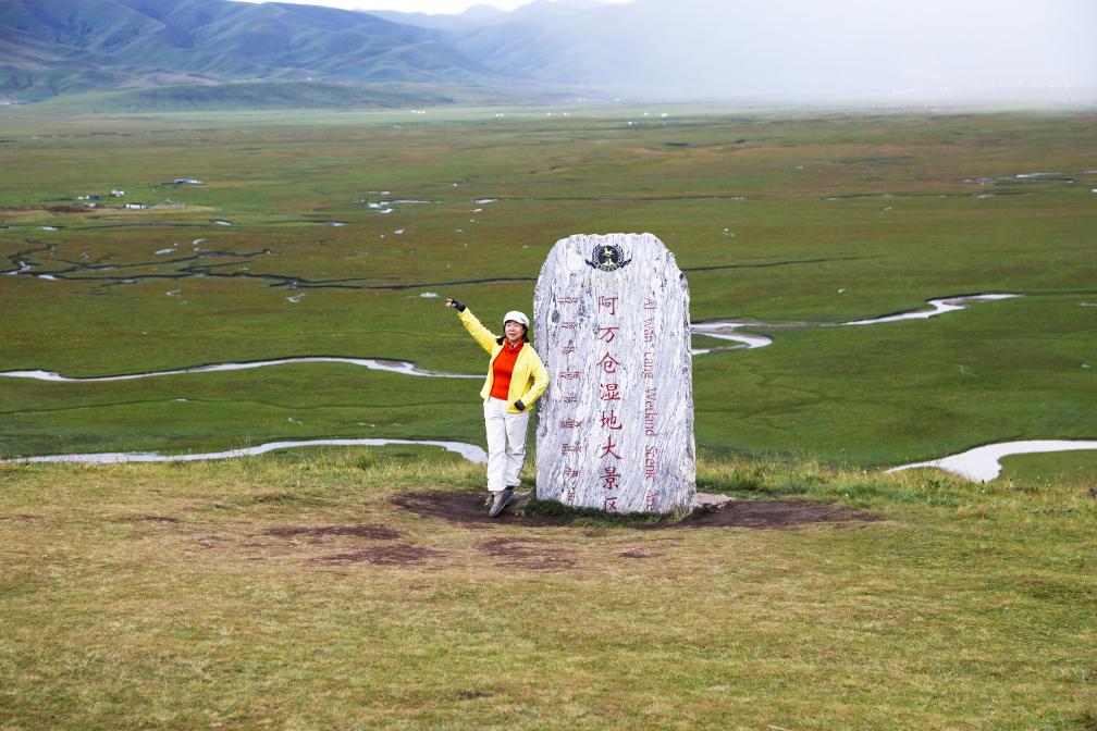 游客在阿万仓湿地拍照“打卡”。新华社记者 马莎 摄