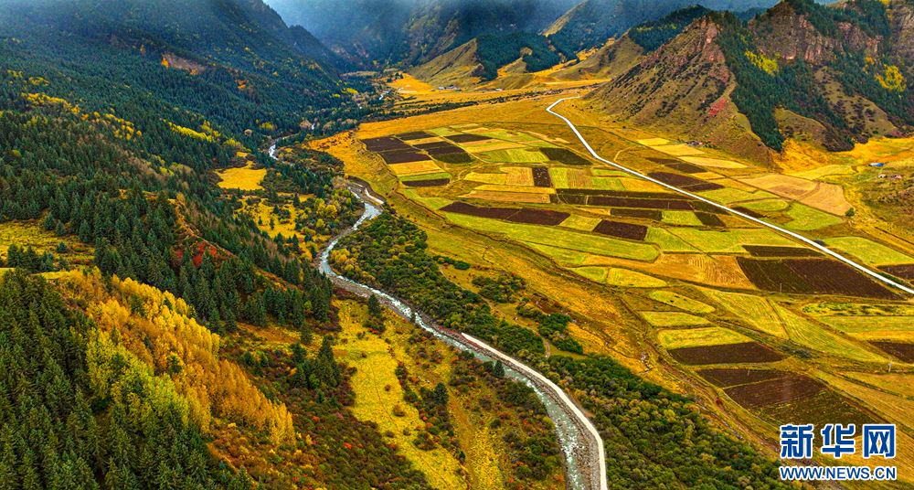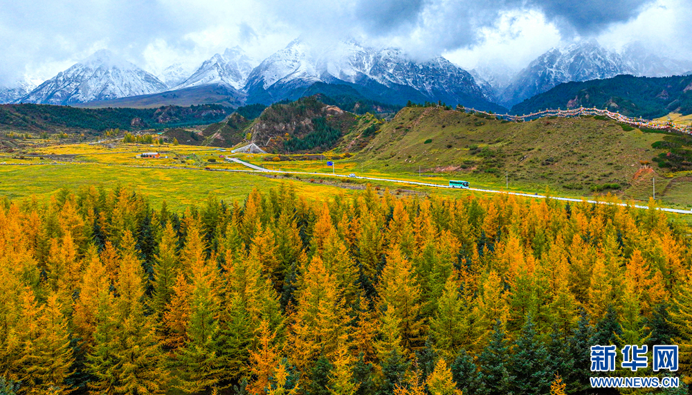 【“飞阅”中国】甘肃肃南:彩林映雪山-新华网