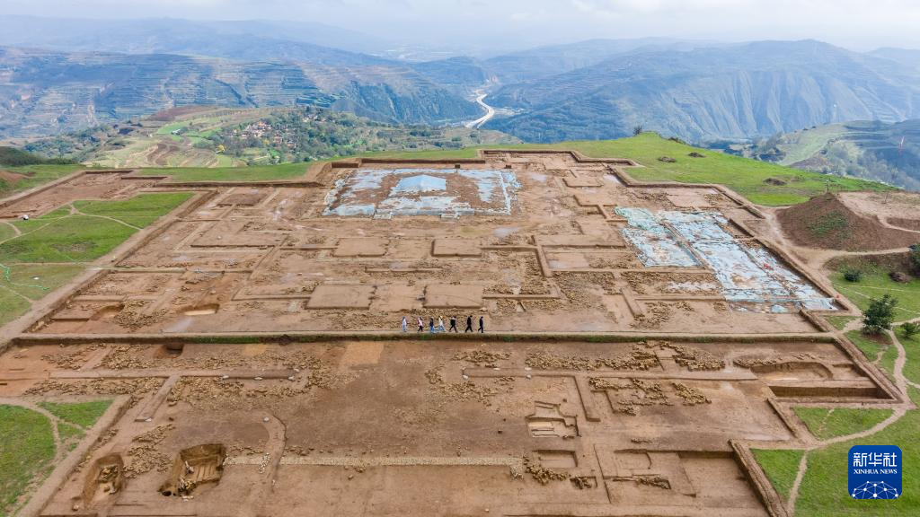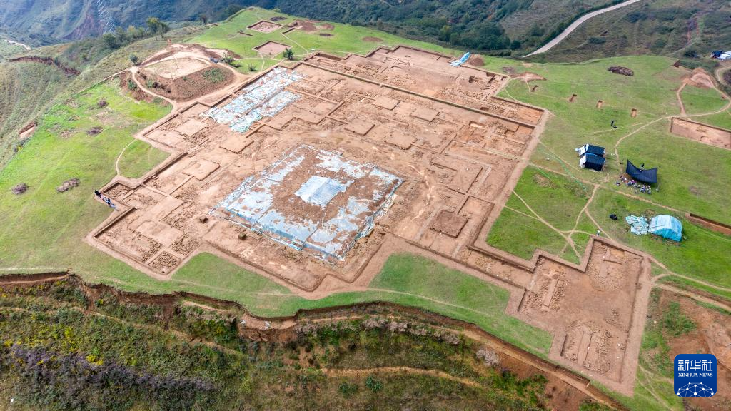 这是10月15日拍摄的甘肃省陇南市礼县四角坪遗址考古发掘现场(无人机照片)。新华社记者 陈斌 摄