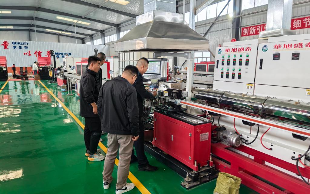武威源硕节水发展有限公司工作人员正在处理物料。新华社记者李杰 摄