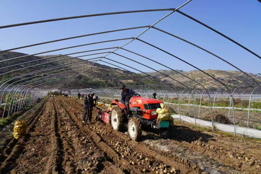 科技的精准赋能不仅提升了原种的质量和产量,还通过“原种—一级种”的繁育链条,辐射带动全县马铃薯种薯产业升级,为商品薯生产提供了坚实的种源保障。与此同时,规模化种植和产业化经营模式也展现出强大的带动效应。在庄浪县永宁镇秦洼村,种植大户正组织人力与机械进行大规模收获。
