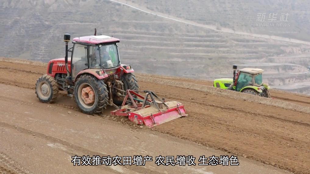 初冬时节,在甘肃省定西市安定区、陇西县等多地高标准农田建设现场,挖掘机、推土机、平地机等机械设备轮番上阵、穿梭作业,正在将零散旱塬逐步变身为“田成方、水相连、路相通”的高产良田。