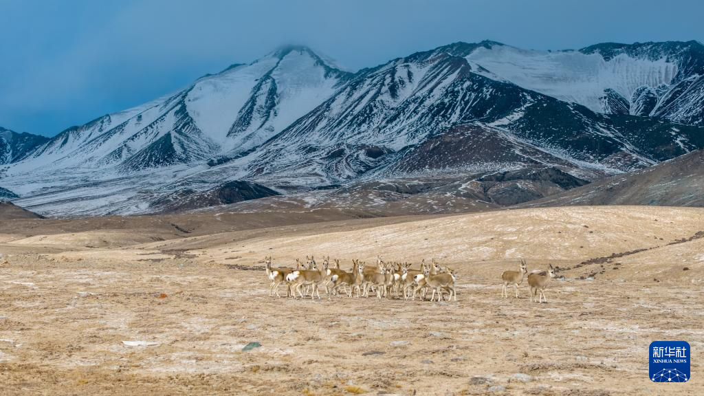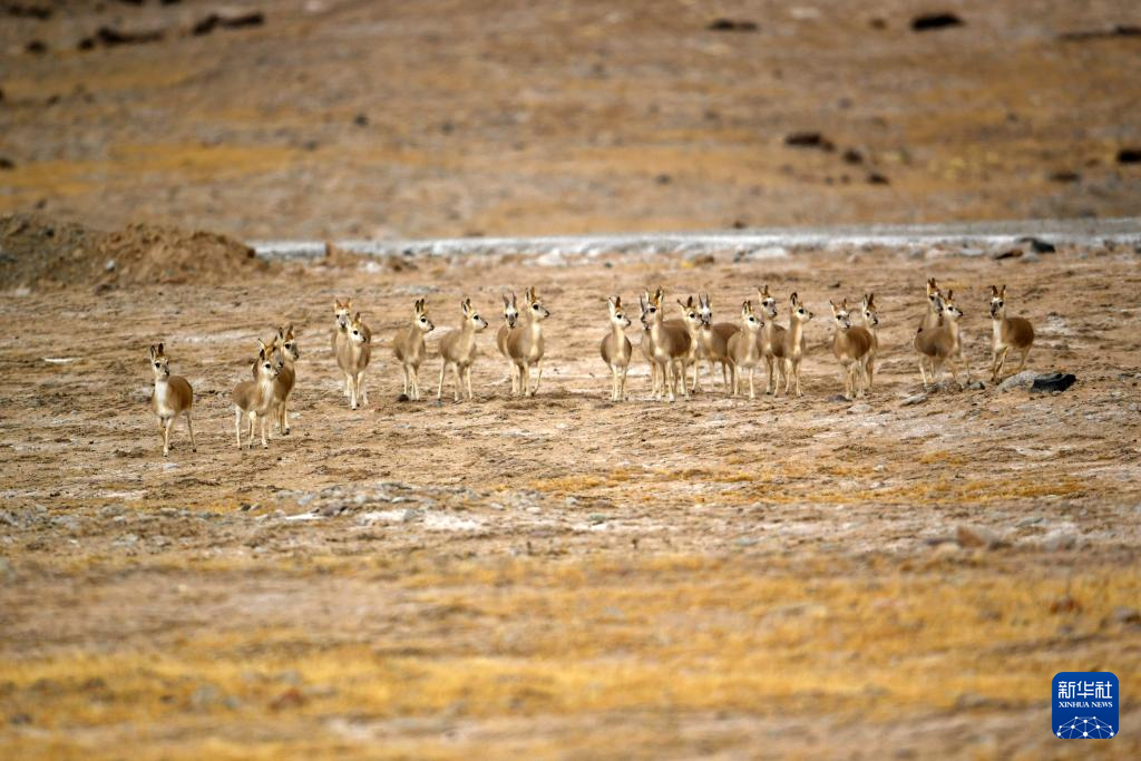 11月14日,国家二级保护野生动物藏原羚在甘肃省阿克塞县阿勒腾乡哈尔腾草原活动觅食。新华社发(高宏善 摄)