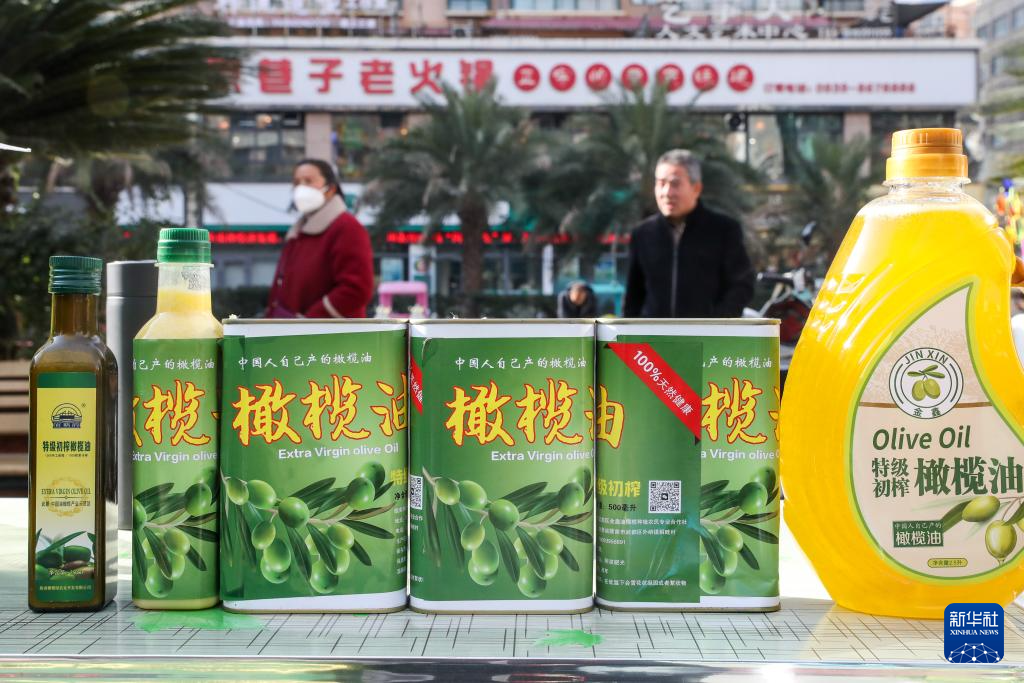这是12月14日在陇南市武都区“冬至大集”摊位上拍摄的橄榄油。新华社记者 郎兵兵 摄