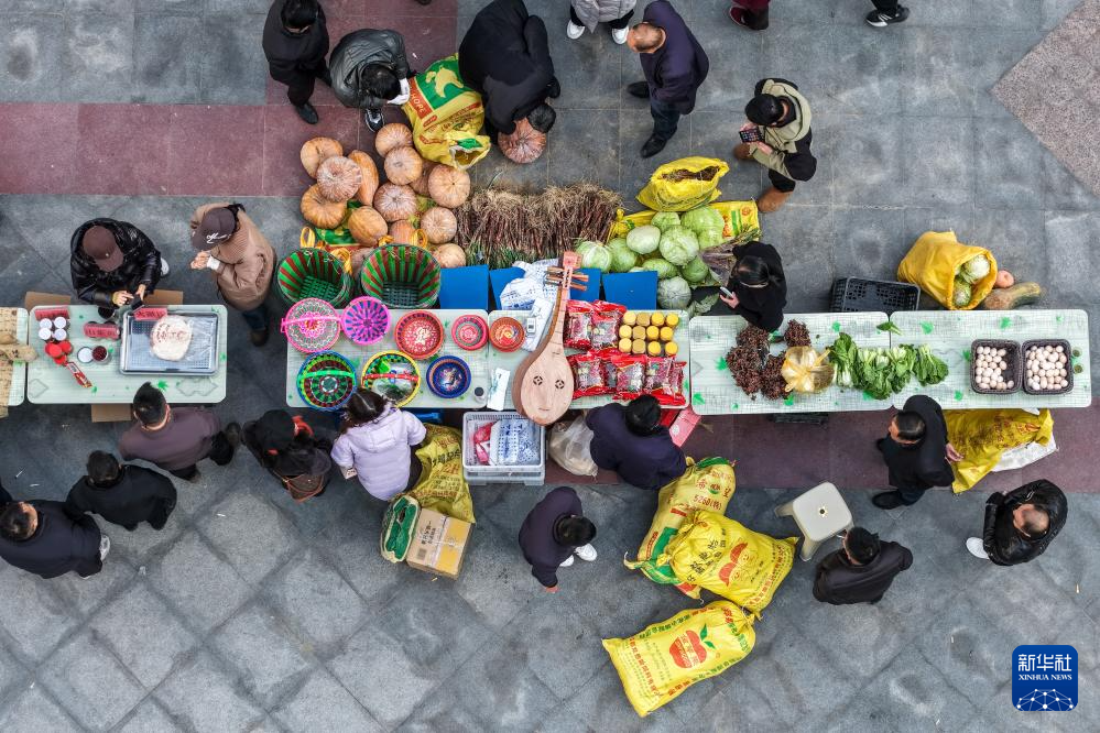 12月13日,居民在陇南市武都区“冬至大集”上选购特色农产品(无人机照片)。新华社记者 郎兵兵 摄