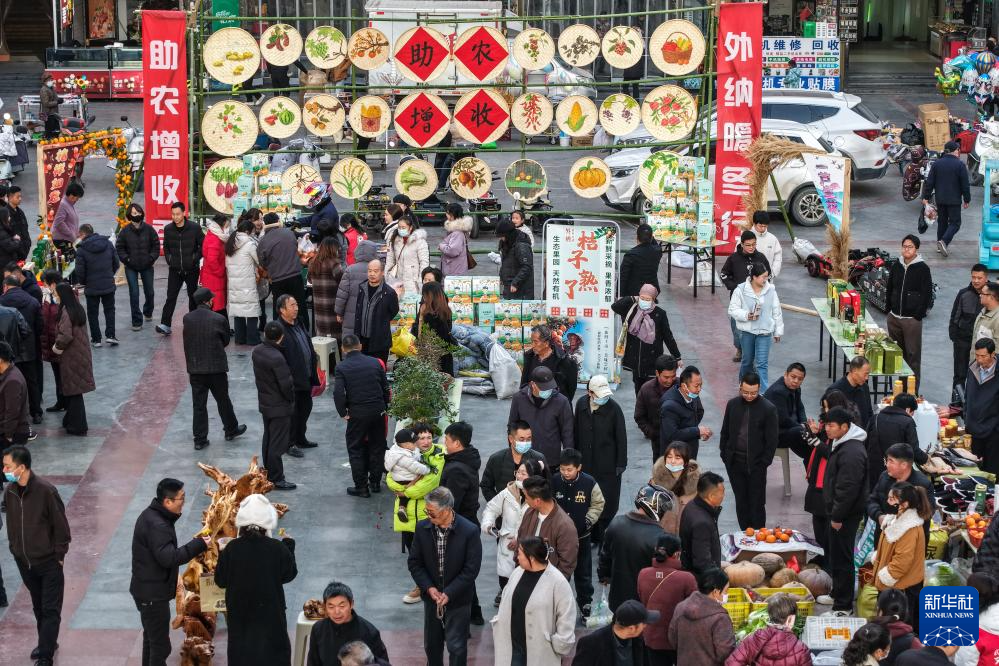 12月13日,居民在陇南市武都区“冬至大集”上选购特色农产品。新华社记者 郎兵兵 摄