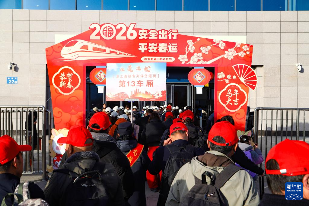 2月25日,在甘肃定西北站,中国铁路兰州局集团有限公司陇西车务段工作人员引导务工人员有序进站。新华社发(王光辉 摄)