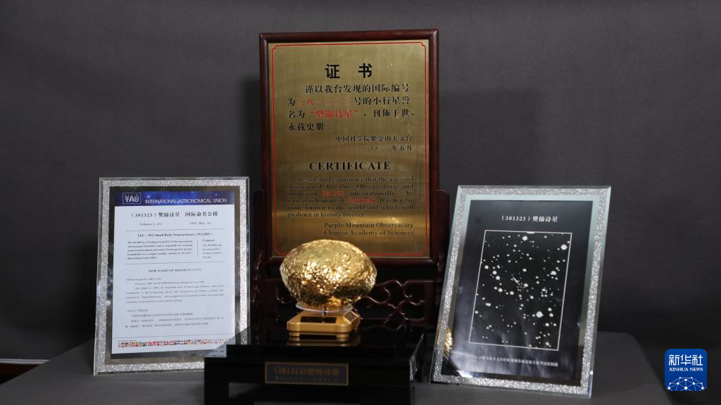 “樊锦诗星”模型及证书。新华社记者 张智敏 摄