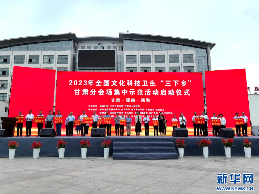 新华网兰州7月12日电(宋昱静)由全国妇联、甘肃省委和甘肃省人民政府联合举办的2023年全国文化科技卫生“三下乡”甘肃分会场集中示范活动,11日在甘肃省陇南市西和县启动。