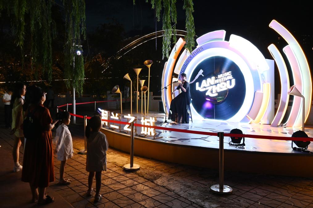 7月19日,在兰州市城关区,游客在黄河岸边欣赏黄河之滨百日千场音乐展演活动。新华社记者 范培珅 摄
