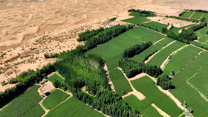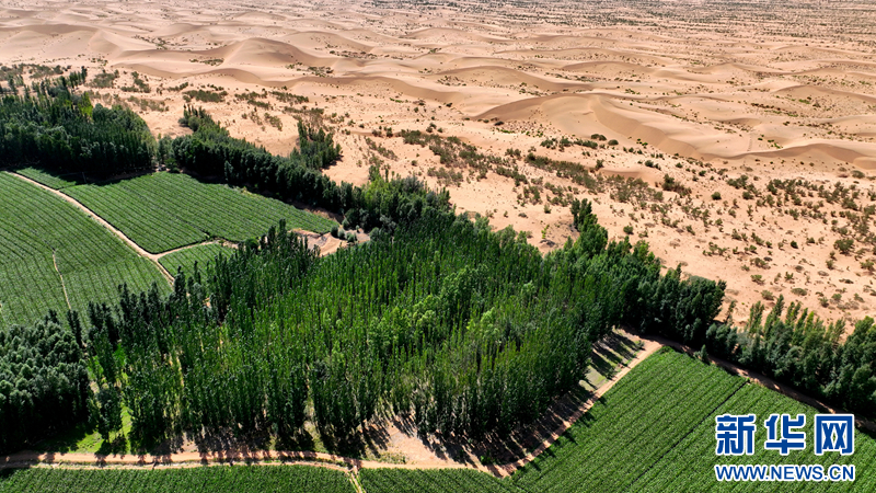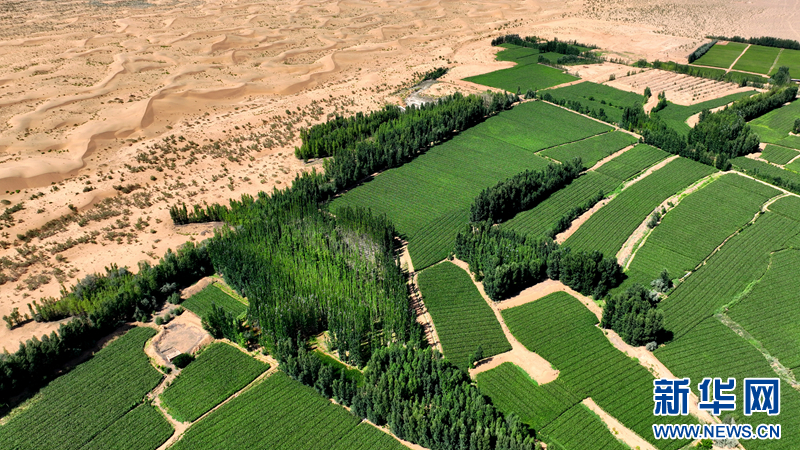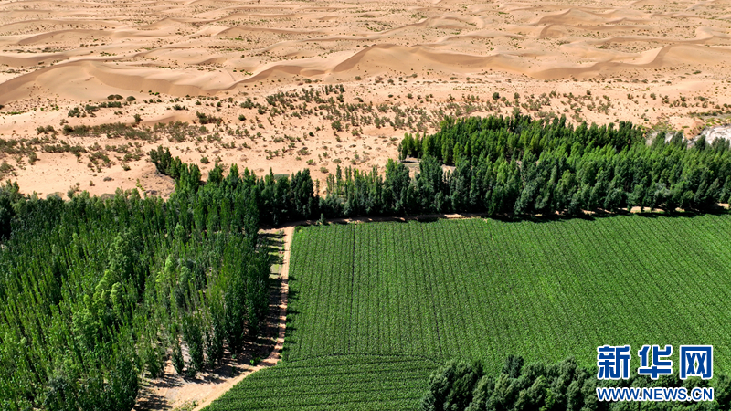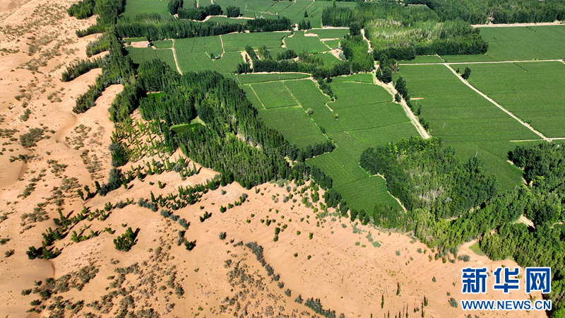 临泽县位于巴丹吉林沙漠南缘。近年来,在抵抗沙漠化侵袭的实践和探索中,形成了外有荒漠植被封育区、中有防风固沙阻沙林带、内有农田防护林网的绿洲生态防护体系,正在向“绿进沙退”转变。新华网发(杨永伟摄)