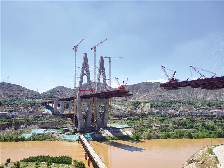 在G312清傅公路上,还有一个地标节点性的建筑——桑园子黄河大桥。去年12月30日,桑园子黄河大桥主塔封顶,大桥建设也全面转入主梁架设及拉索安装阶段。