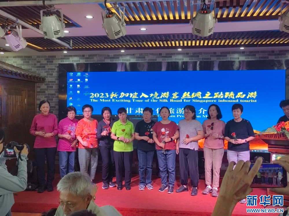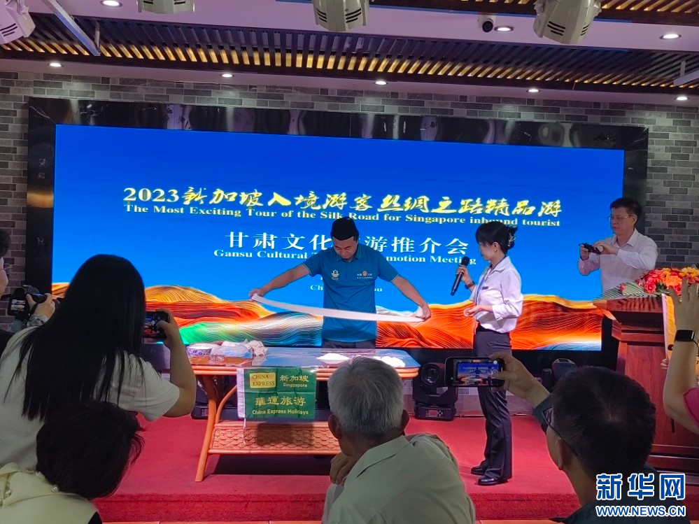 推介会上,甘肃文化和旅游推介大使向新加坡游客详细介绍了甘肃多元且极富特色的文化旅游资源;兰州拉面师傅为大家现场表演了非遗美食牛肉面的拉面绝技;新加坡南方艺术研究会合唱团还进行了合唱表演。