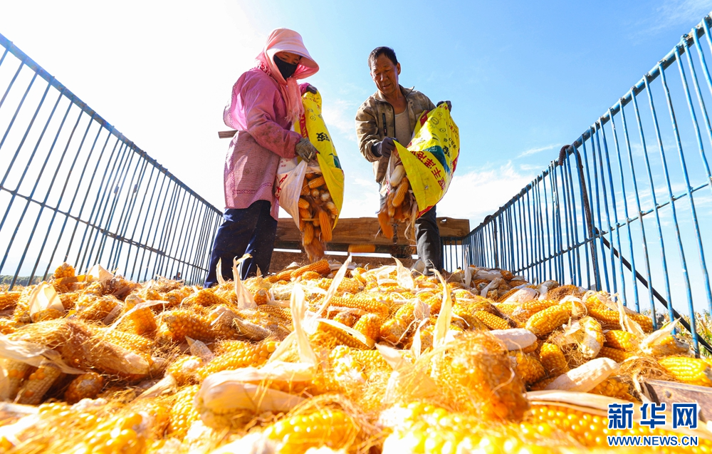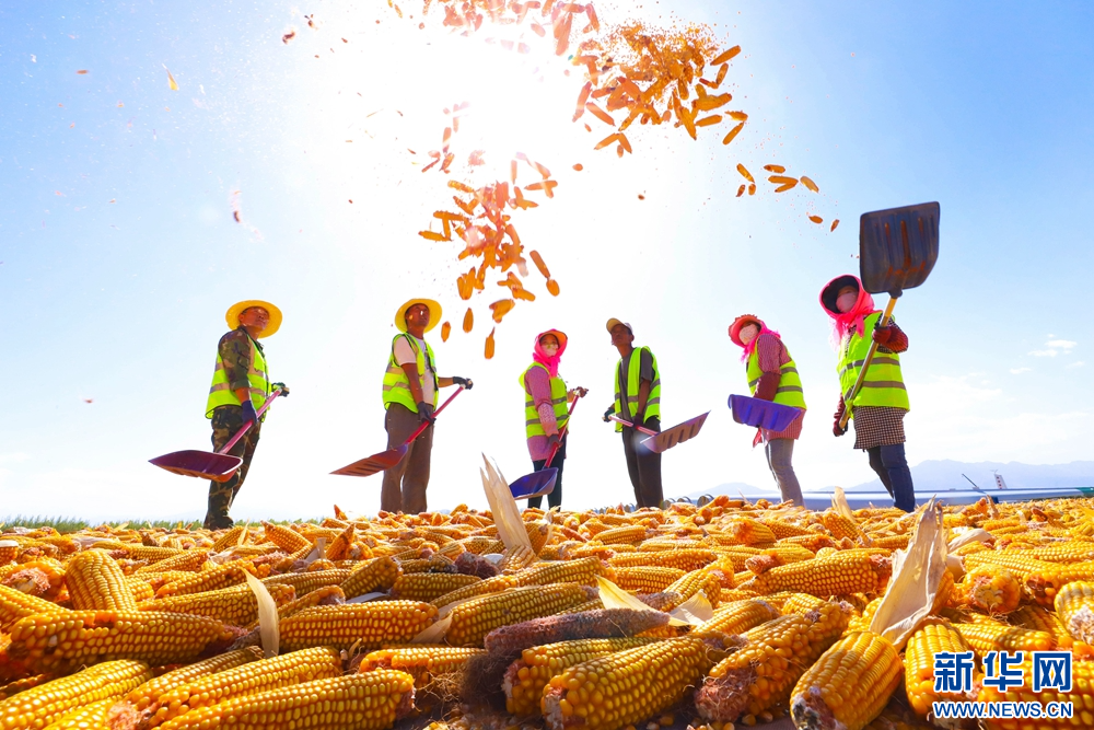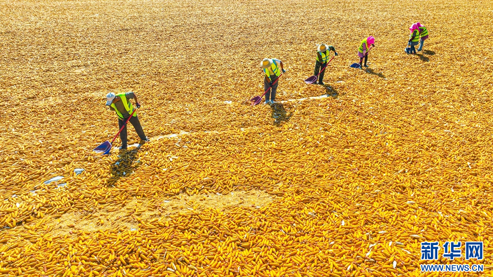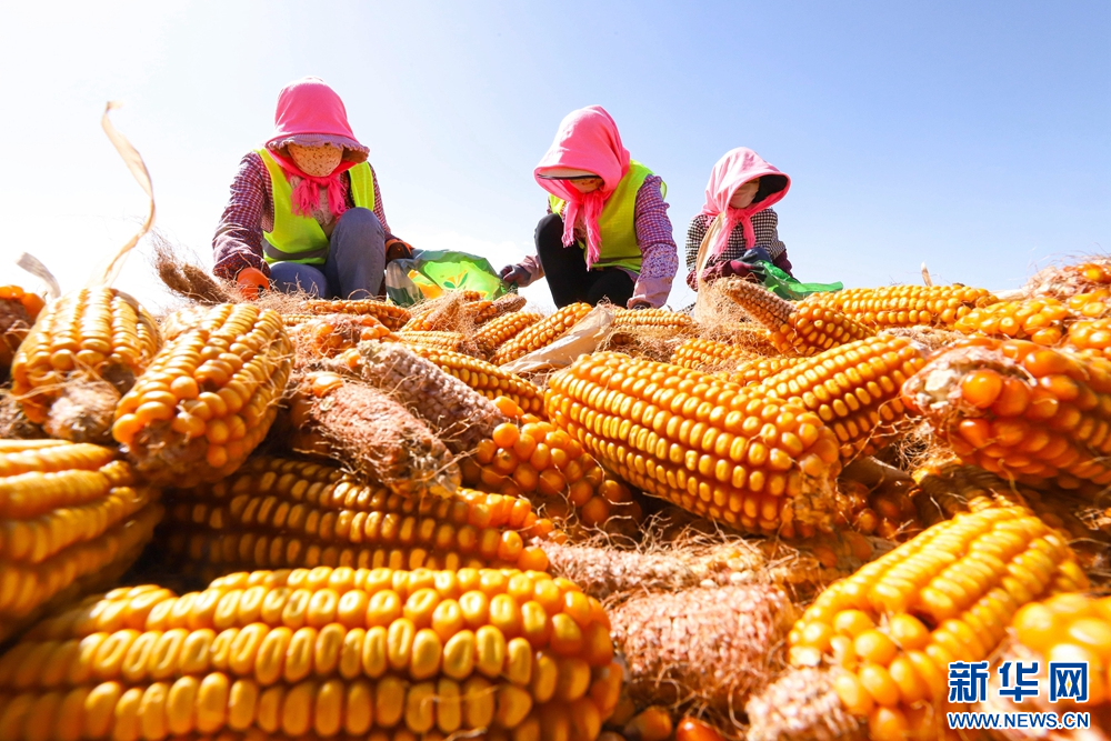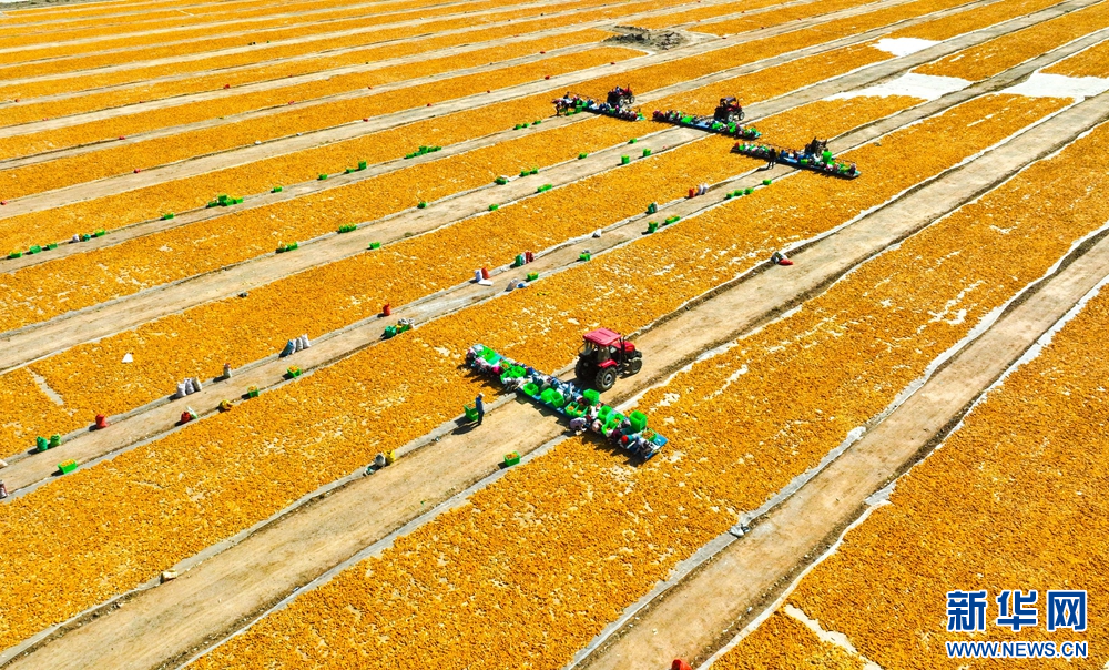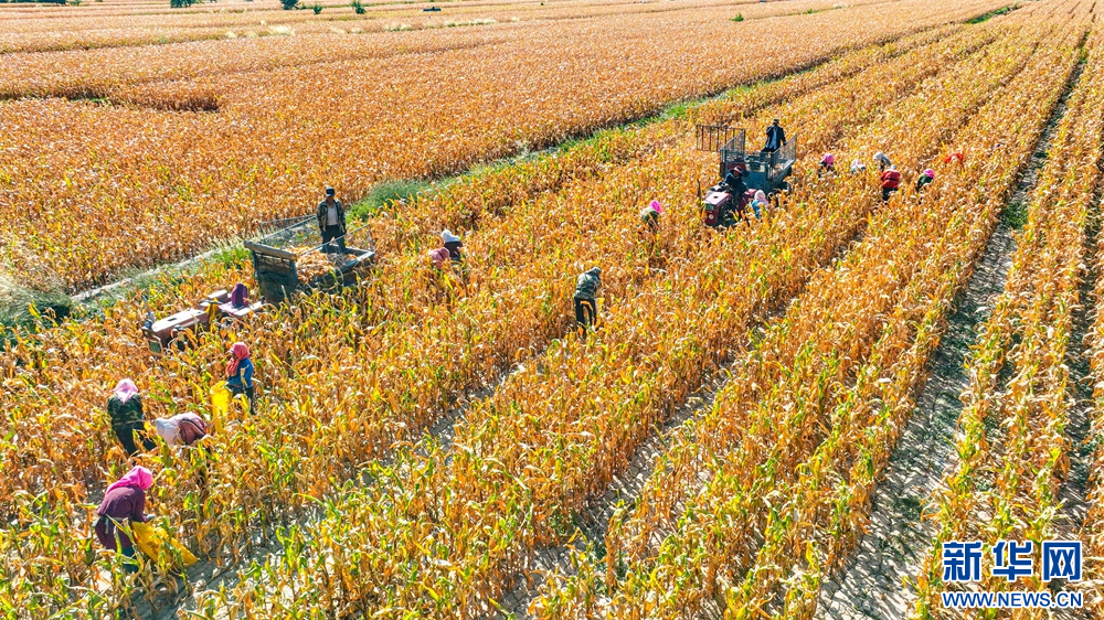 金秋时节,甘肃省张掖市临泽县30.5万亩制种玉米迎来丰收,广袤大地片片金黄,一派繁忙景象。据悉,张掖市为国家级玉米制种基地,年种植面积100多万亩。目前,种子产业已成为张掖产业化程度高、联系农户广的主导产业。新华网发(王将 摄)