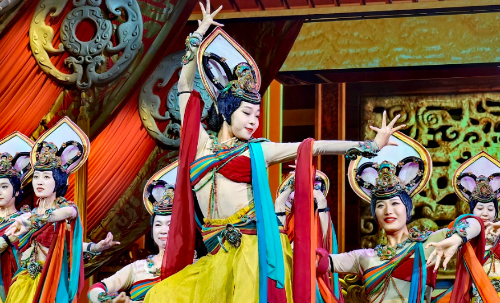 9月19日晚,歌舞剧《天下雄关》在甘肃嘉峪关·关城里景区上演。该剧以张骞、霍去病、玄奘等人物为题材,通过歌舞、杂技、武术等多种艺术形式,辅以先进的3D全息投影、3D飞行、高空威亚、水幕与流沙等高科技手法,为观众带来一场视听盛宴。新华网发(宋昱静 摄)