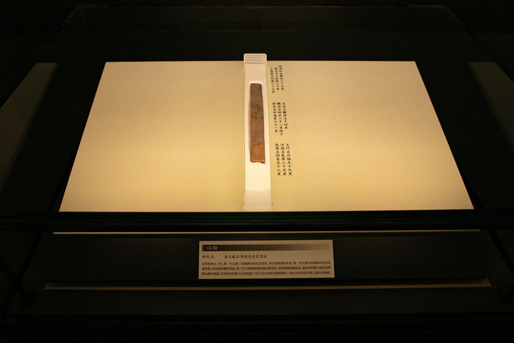 这是9月7日拍摄的甘肃简牍博物馆展出的“悬泉里程简”,是证明丝绸之路东段线路存在的实物佐证。