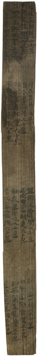这是出土于今内蒙古自治区额济纳旗破城子遗址的“居延里程简”(甘肃简牍博物馆供图)。