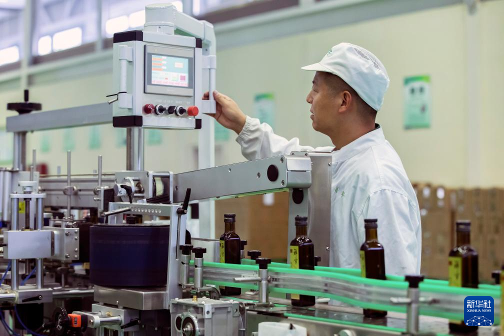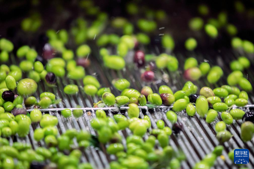 10月11日,工作人员在陇南市武都区一家油橄榄加工企业生产线上作业。新华社记者 郎兵兵 摄