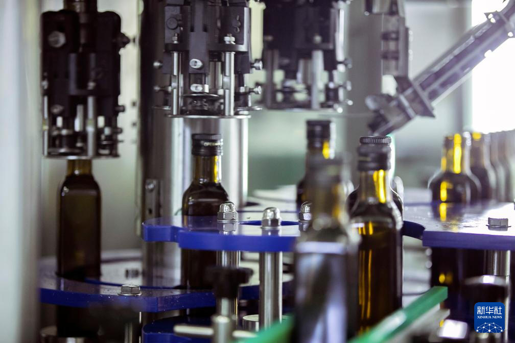 这是10月11日在陇南市武都区一家油橄榄加工企业拍摄的橄榄油灌装生产线。新华社记者 郎兵兵 摄