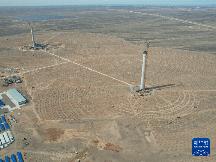 相距1公里的东西两座吸热塔比肩而立,73台风机、48897个光伏组件支架基桩、26954块定日镜安装正在有序施工,预计将在今年底前完成全部风电、光伏项目施工并具备并网条件,2024年6月完成光热项目主体建设并实现并网。项目的建成将探索推动光热发电与光伏发电、风力发电互补调节等多种能源联合调度模式,探索新能源大基地项目建设新模式。
