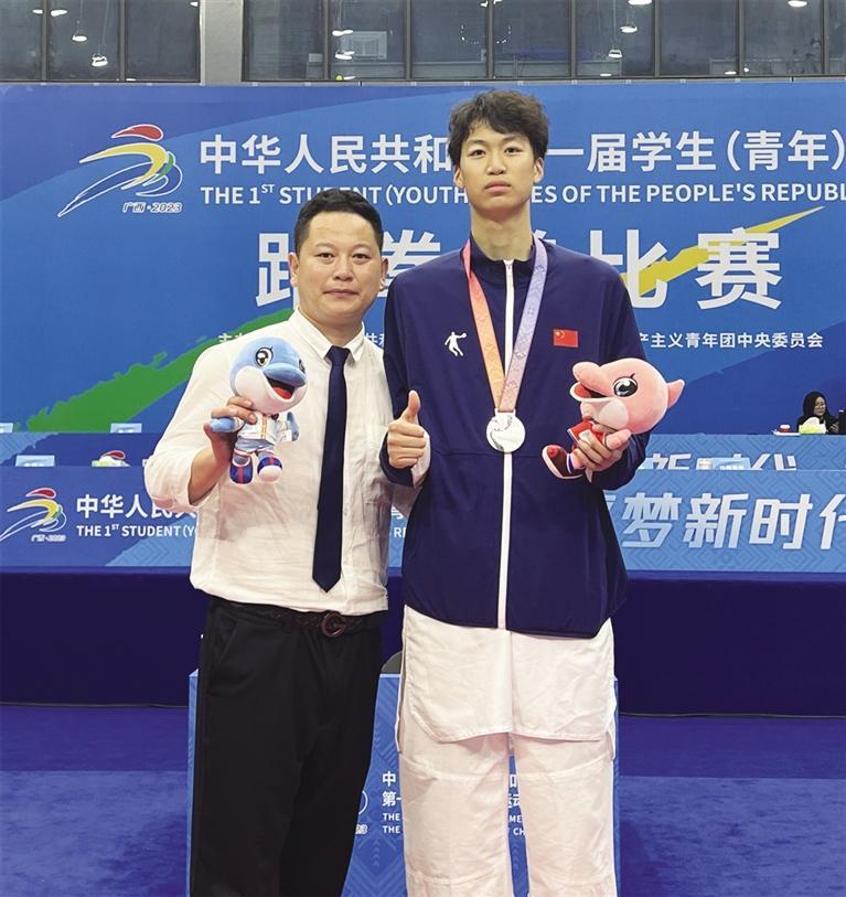 在10月27日晚进行的第一届全国学生(青年)运动会(简称学青会)跆拳道男子68公斤决赛中,代表兰州出战的兰州市体育运动学校跆拳道队16岁小将王郭清勇夺银牌,为兰州市代表团再添荣誉。
