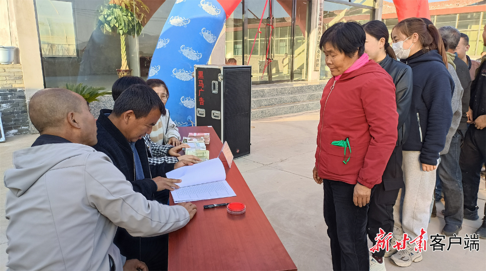 “自从村里成立了股份经济合作社,农闲时候,一直在合作社里打工,现在又收到了分红,日子真是越来越好了。”11月9日下午,在2023年甘谷县安远镇巩川村股份经济合作社分红仪式上,村民巩秀玲拿着分红款,高兴地说。