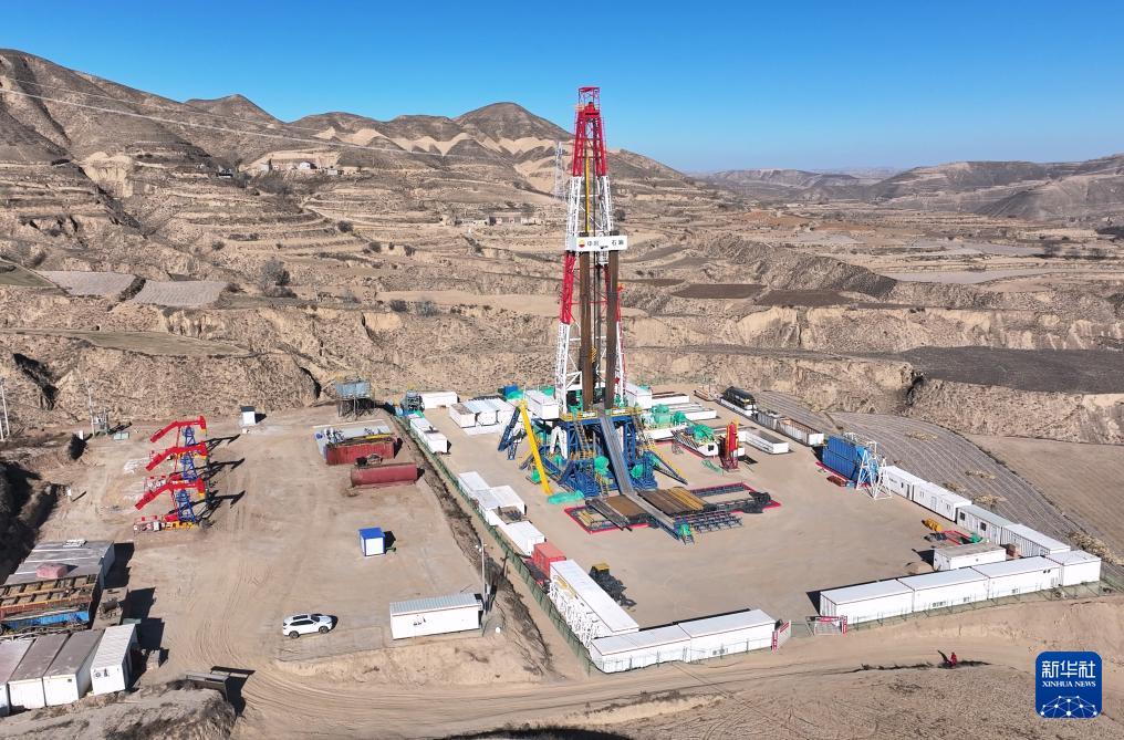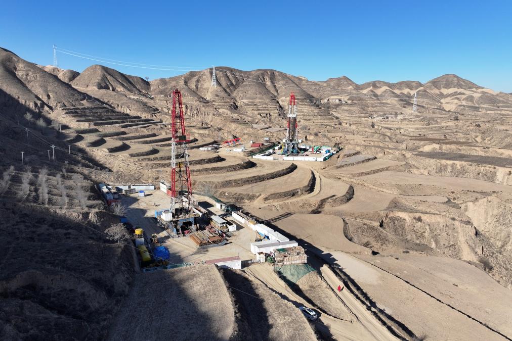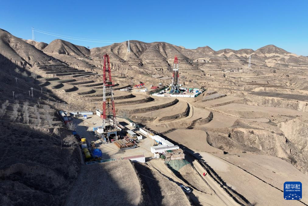 这是11月30日在甘肃省庆阳市环县拍摄的洪德油田钻井施工现场(无人机照片)。新华社发(长庆油田宣传部供图)