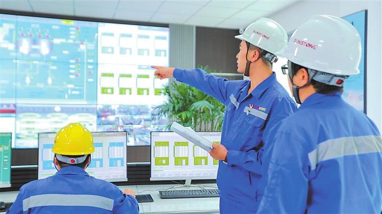 嘉峪关市索通公司生产调度中心引进的项目负责人进行现场调度。