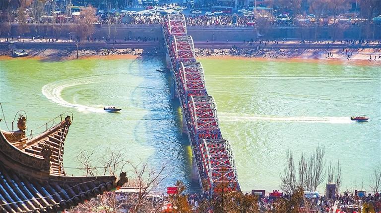 春节假期,游客在兰州市中山桥景区乘坐快艇,乐享节日时光。新甘肃·甘肃日报通讯员 金万贵