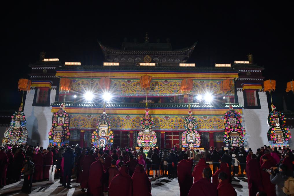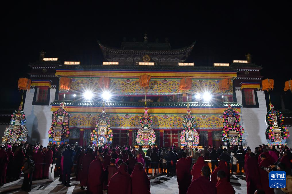 当日是农历正月十五,在甘肃省甘南藏族自治州夏河县,被誉为“世界藏学府”的拉卜楞寺举行一年一度的酥油花灯展,僧人们制作的精美酥油花作品吸引了众多僧俗群众和海内外游客前来观看。