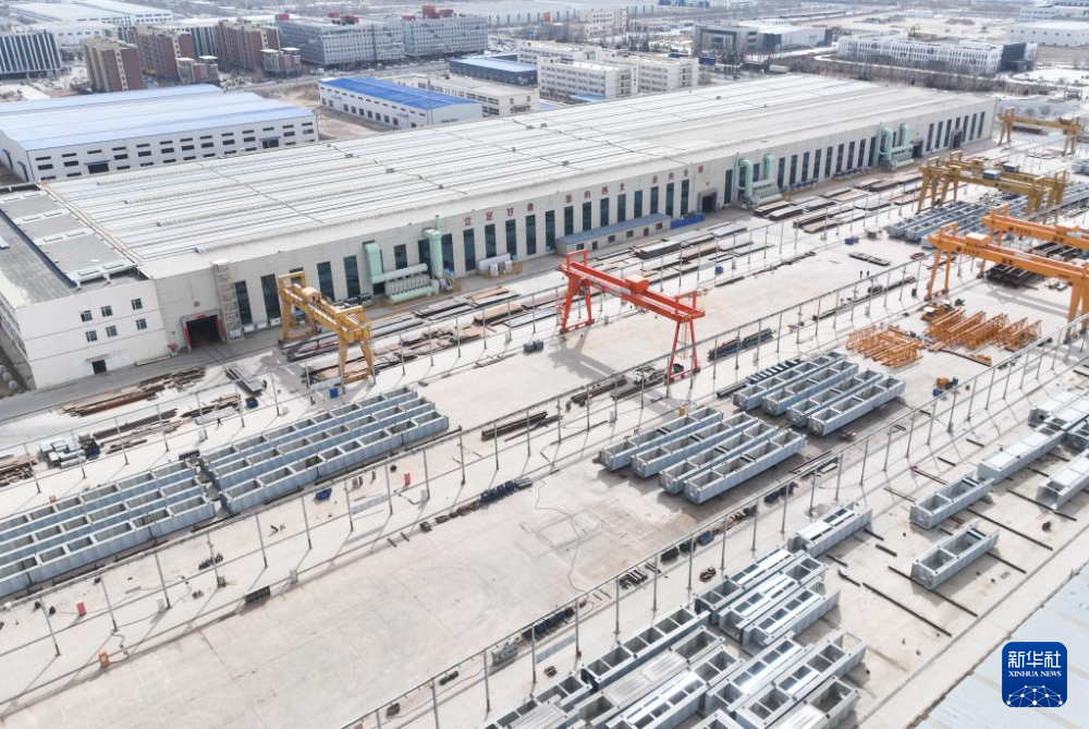 这是3月14日在兰州新区拍摄的甘肃博睿交通重型装备制造有限公司生产厂房(无人机照片)。新华社记者 马希平 摄