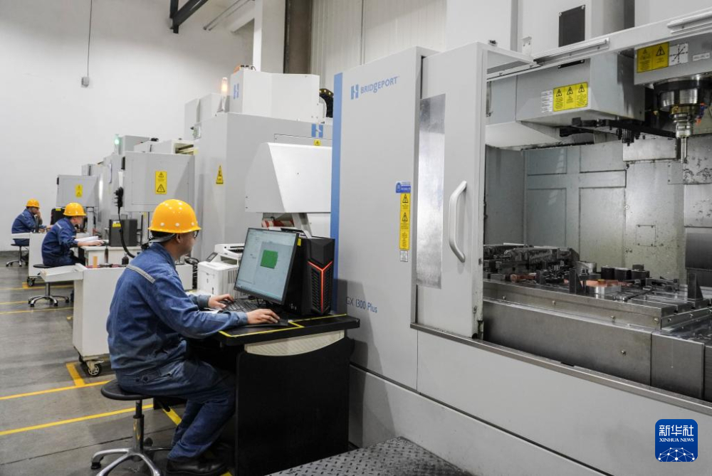 3月14日,在位于兰州新区的兰州科近泰基新技术有限责任公司,工作人员在精密加工间生产医用重离子加速器相关部件。新华社记者 马希平 摄