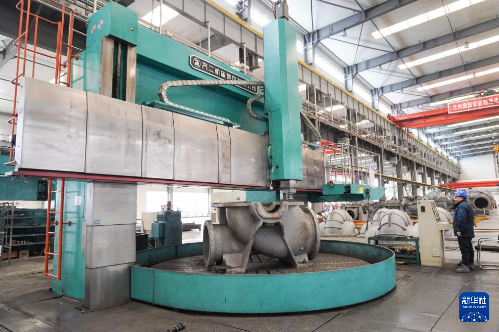 3月14日,在位于兰州新区的兰州兰泵有限公司,工作人员在车间进行生产作业。新华社记者 马希平 摄