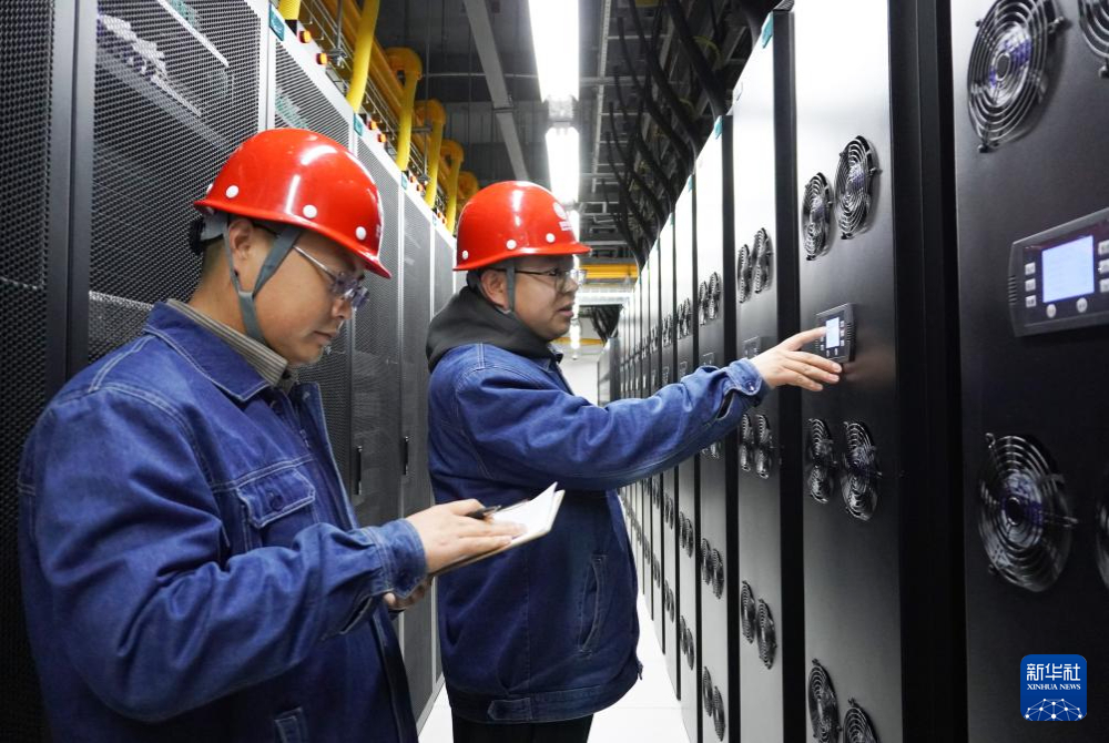 3月14日,在位于兰州新区的国网思极飞天(兰州)云数科技有限公司,工作人员在大数据机房巡检。新华社记者 马希平 摄