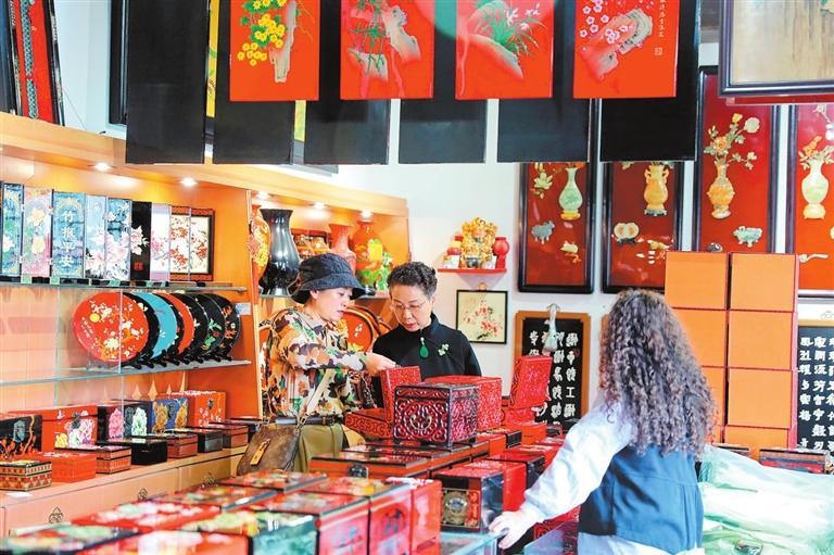 游客选购天水雕漆产品。本组图片摄影:新甘肃·甘肃日报记者 高樯