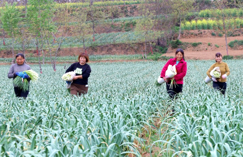 店村镇毛坝村大蒜基地里群众收获满满。刘建军 摄