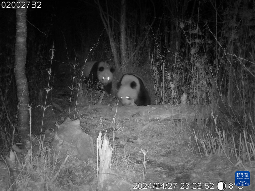 新华社兰州4月28日电(记者马莎)4月27日晚,布设在大熊猫国家公园白水江园区的一台红外相机拍摄到野生大熊猫交配画面。据悉,这是该园区首次正面拍摄到野生大熊猫交配画面。