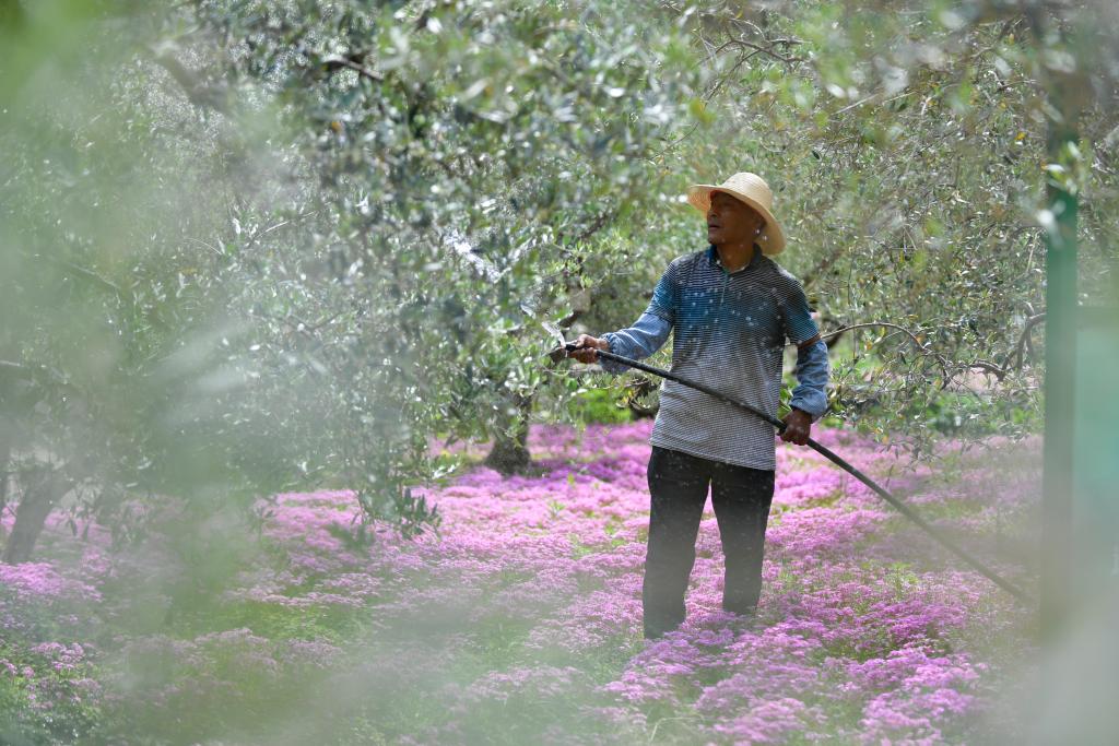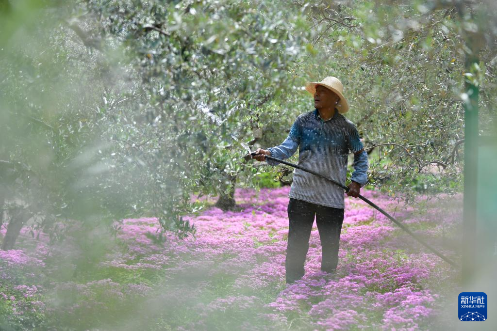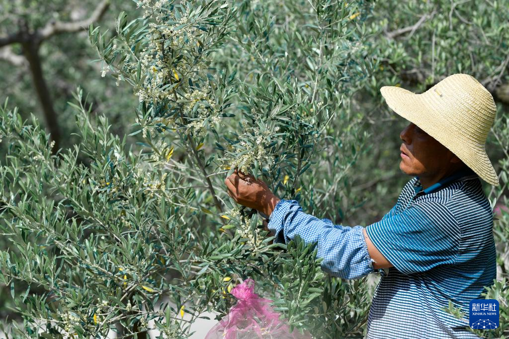 初夏时节,甘肃省陇南市的油橄榄进入花期。洁白的油橄榄花挂满枝头,果农抢抓农时浇水、施肥,盼望金秋迎丰收。