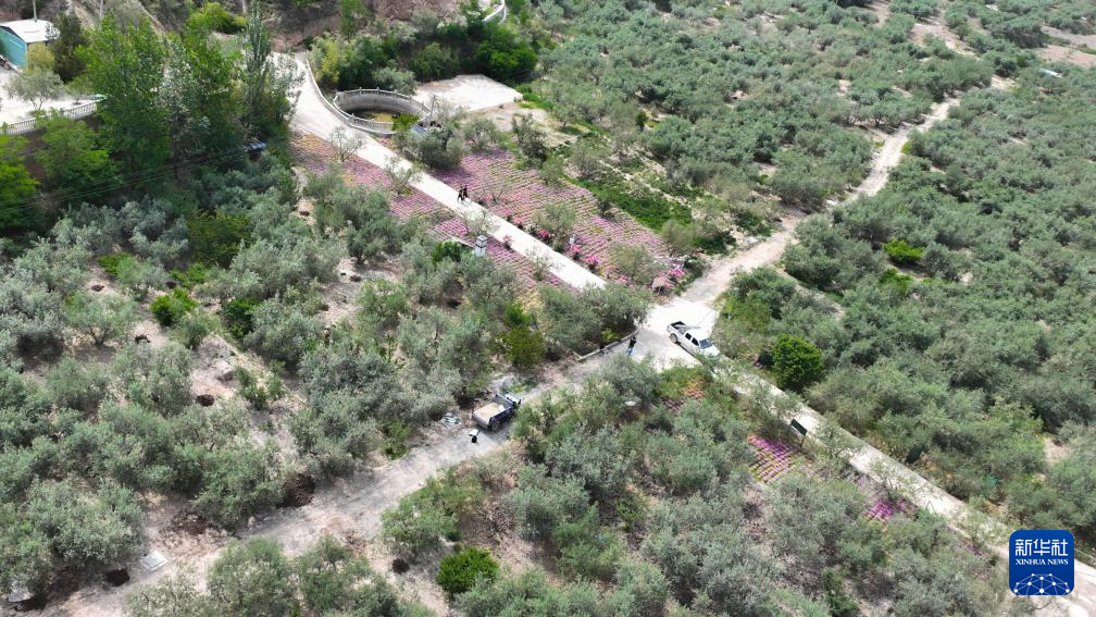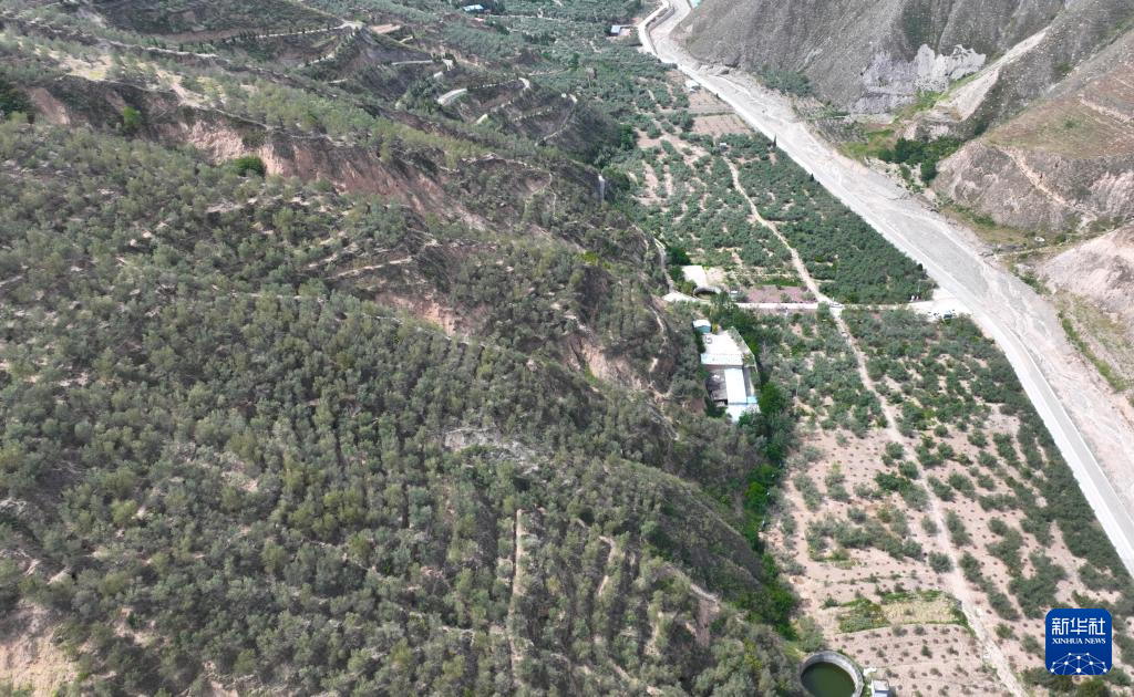这是5月17日在陇南市武都区汉王镇拍摄的祥宇国家级万亩有机油橄榄种植示范基地(无人机照片)。新华社记者 郎兵兵 摄